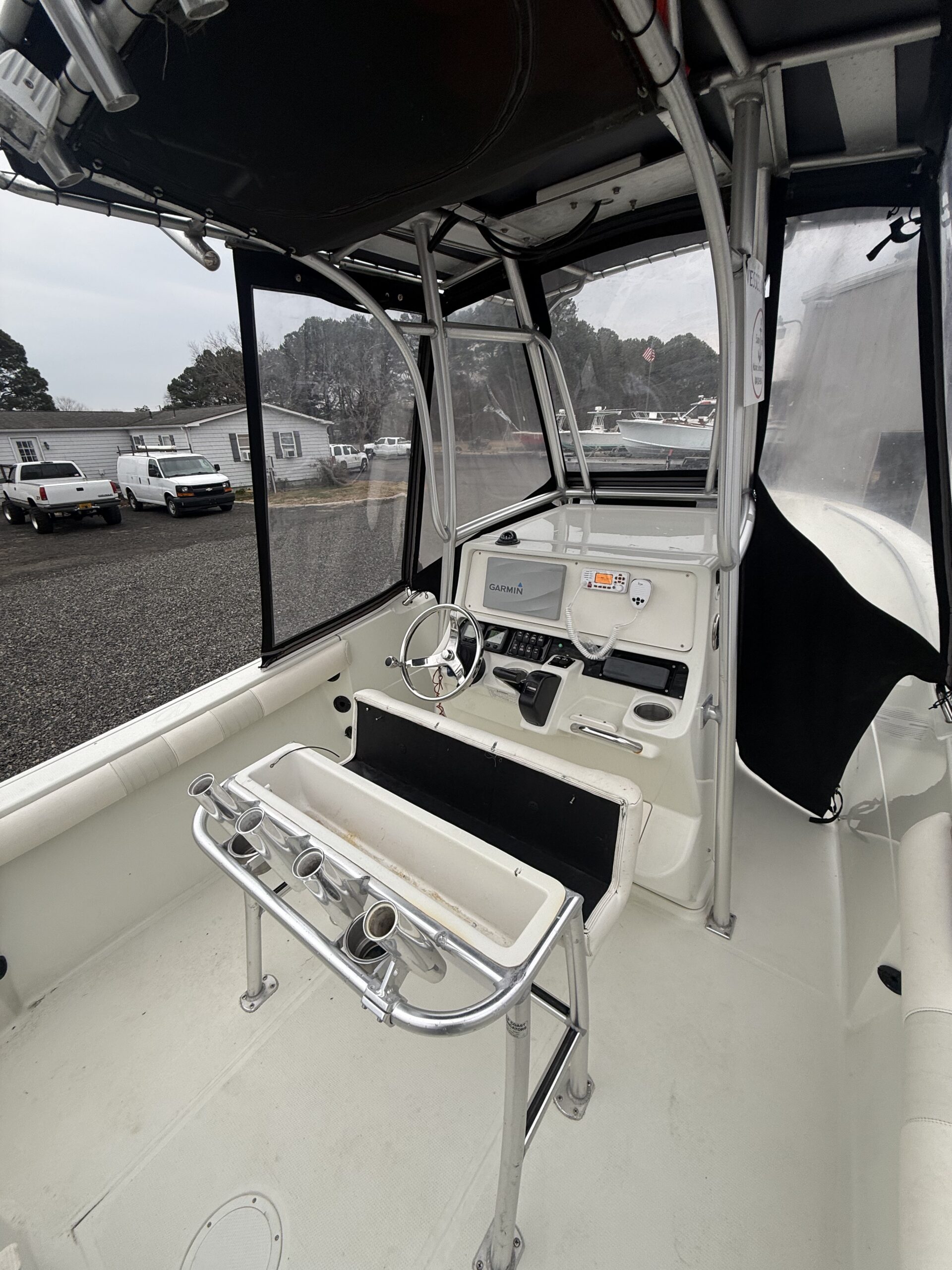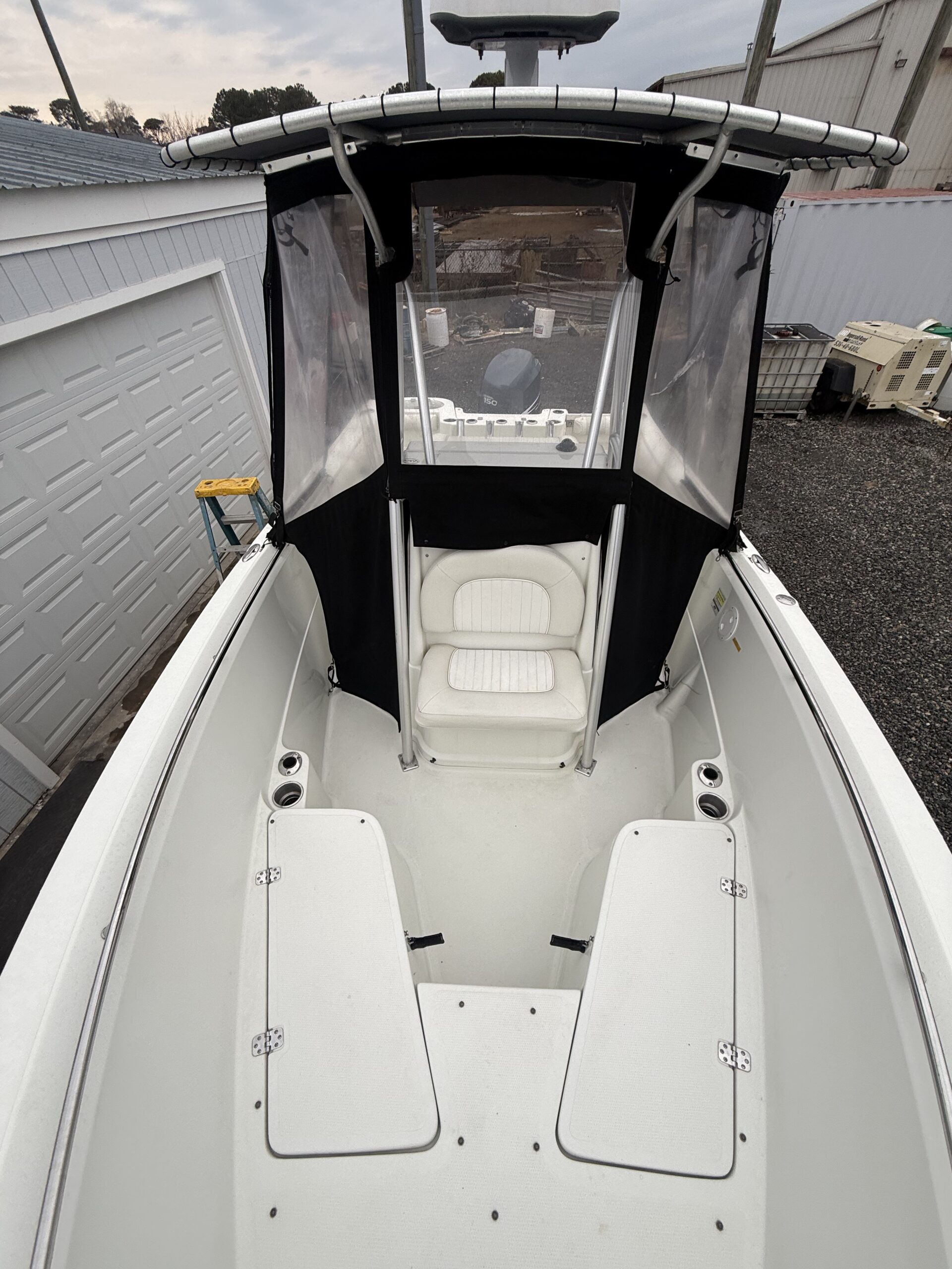 * Weather Protection: Full Isinglass curtains included—keeps the cockpit dry and extends your fishing season.
